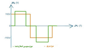 موج مربعی اصلاح شده کیفیت توان بهتری را ارائه می دهد (THD~ 45%) و برای اکثر تجهیزات الکترونیکی مناسب است.